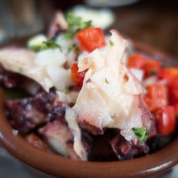 We were looking for a cozy tapas place that allows dogs and found this gem on Yelp. The outdoor seating has a wonderful ambiance, making it feel like an integral part of the restaurant. A few steps lead up to it, and a thick vine layer separates it from the street, creating a cozy, secluded atmosphere. The large doors were open, seamlessly connecting the outdoor area with the indoor space. It definitely reminded us of our trip to Barcelona. Of course, I started with the ACEITUNAS ALIÑADAS, marinated olives complemented with pickled onion, peppers, and cornichons. They were very good. Next, we had the ALMEJAS A LA MARINERA, steamed clams in a delicious tomato sauce, perfect for dipping our bread. We also enjoyed some dry and sweet vermouth to taste but options. Both were delicious. My partner ordered the CROQUETAS DE BACALAO despite my warnings. I'm not a fan of fried food and we had hit-or-miss experiences with it in Barcelona, as it can get too greasy and heavy. However, he was pleasantly surprised - they were not greasy and just right. The PATATAS A LA BRAVA had the perfect level of spiciness. The boys enjoyed some JAMÓN SERRANO, PULPO A LA GALLEGA, and CARACOLES AL ALI-OLI. We finished with TARTA DE CHOCOLATE, which are usually too heavy for me, but this one was lighter than usual and quite good. It was a delicious dinner in a great ambiance. We definitely felt like we were transported back to Spain. On a side note, we had our dogs with us, and they seated us in a good spot for the dogs to relax. They brought water for them immediately, which was really nice. The service was very friendly and nice. UEFA 2024 Championship was going on, and we watched it on TV during our dinner. We had a nice chat about the games with the staff. Let's see if they are going to win the championship this year.
